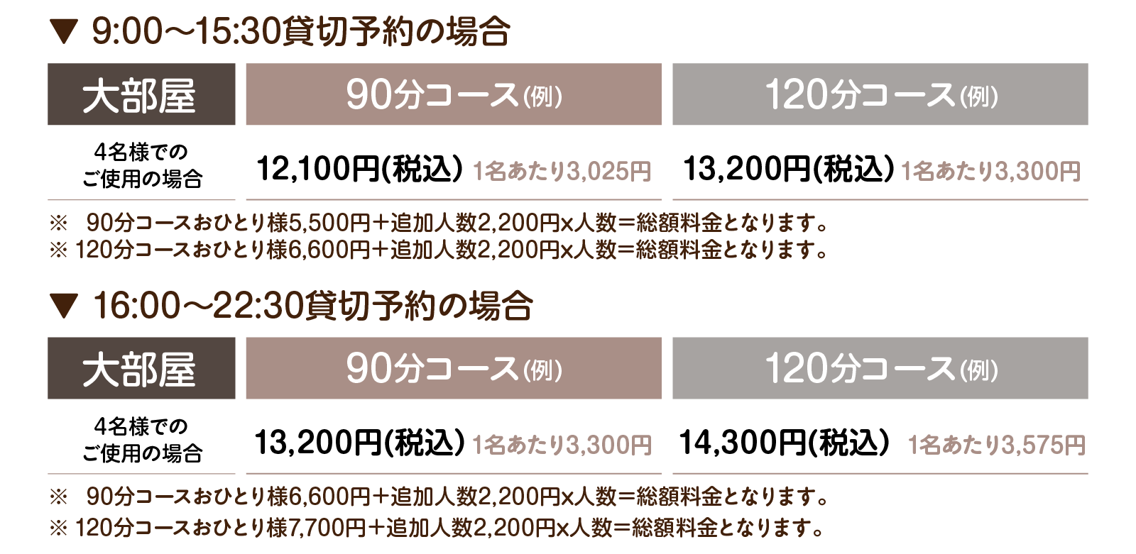 1名様追加ごとに+2,200円(税込)加算