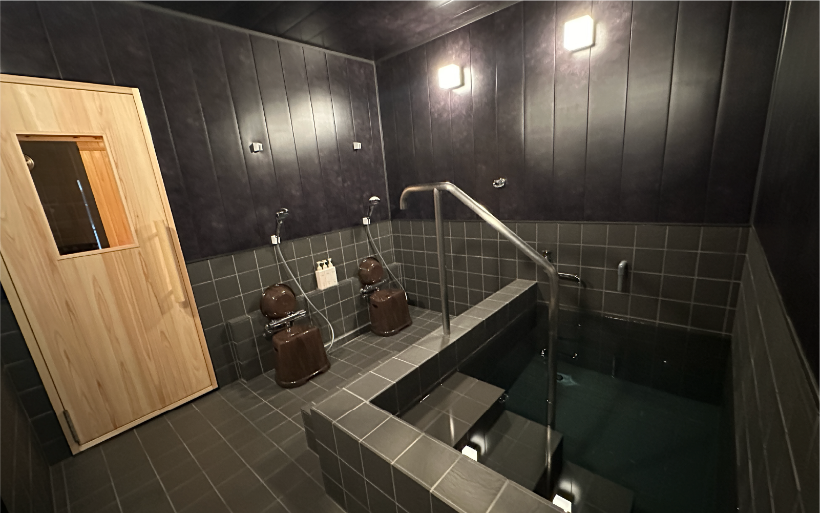 深さ1メートルの水風呂はチラー(冷却水循環装置)で15℃~17℃に設定。熱くなった体をつま先から肩までしっかりと冷やす事ができます。